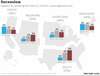 A propos des sécessionnistes, on constate que sur les 5 sous-groupes géographiques représentés, le sud supporte à 44% l'idée de quitter l'Union et la Côte Pacifique est à 39%. Les autres régions sont entre 30% et 34%. Dans le sud, 66% des sécessionnistes sont républicains alors que dans la Côte Pacifique, ils sont représentée à 47% par des démocrates. Dans le Heartland, la majorité des sécessionnistes sont des indépendants.